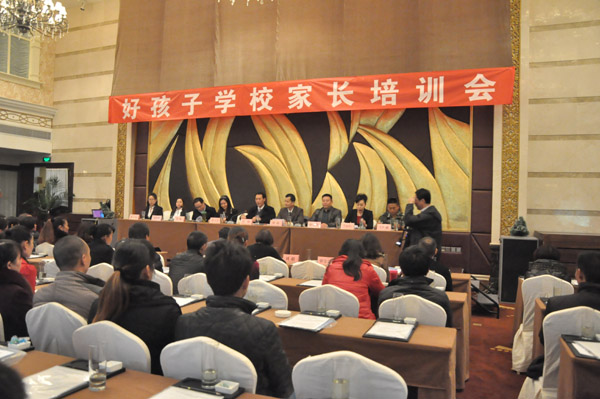 2013年12月14日下午,安寧市好孩子教育培訓(xùn)學(xué)校舉辦了期末家長培訓(xùn)會,此次參加培訓(xùn)的家長共182人。學(xué)校校長魯植、常務(wù)副校長趙培亨、副校長周榕樺、校長助理李新紅、行政辦公室主任夏藝璇、總教官毛積敏等學(xué)校領(lǐng)導(dǎo)及部分班主任出席了會議。會議開幕式上,省教育廳現(xiàn)場授予了我!霸颇鲜〗逃龔d聯(lián)合寶貝科研項目合作基地”的牌匾。