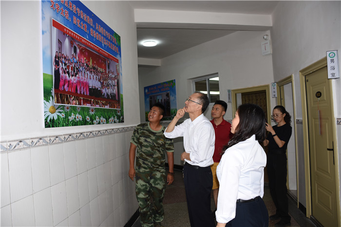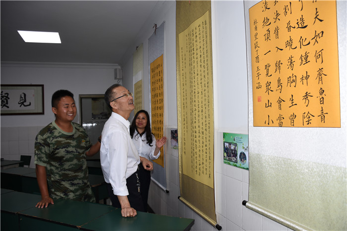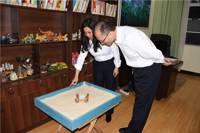 當(dāng)?shù)弥總(gè)孩子入校都要從洗碗、洗衣服、疊被子的生活小事開始做起時(shí),翟教授連連夸贊學(xué)校的養(yǎng)成教育設(shè)置得非常好;當(dāng)看到學(xué)生宿舍的被子疊得整整齊齊,小教室里孩子們有模有樣的書法時(shí),翟教授更是感受到了孩子們蛻變的態(tài)度、心境與決心;當(dāng)走到心理輔導(dǎo)室時(shí),翟教授饒有興趣地查閱了學(xué)校心理輔導(dǎo)工作記錄情況,并與我校心理輔導(dǎo)首席專家周榕樺老師進(jìn)行了深入的探討交流。翻看著每個(gè)孩子的成長記錄清晰詳細(xì),量表簡潔適用,翟教授連連稱贊我校心理輔導(dǎo)工作開展得扎實(shí)有效;當(dāng)看到文化走廊間懸掛的春節(jié)圖片時(shí),翟教授連連感嘆學(xué)校老師24小時(shí)傾情陪伴孩子的無私奉獻(xiàn);當(dāng)?shù)弥獙W(xué)校辦學(xué)八年來,成功改變了數(shù)千名孩子,更是給予了高度評價(jià)。