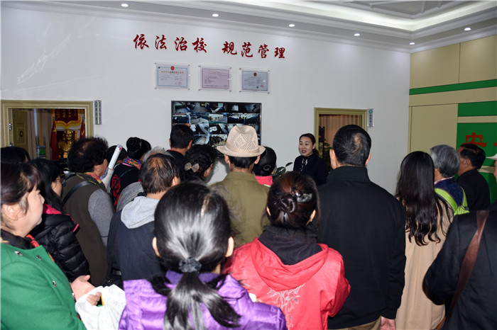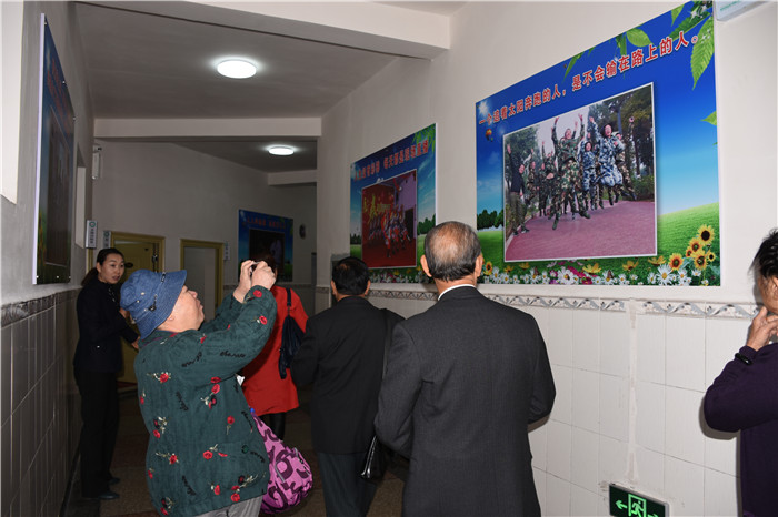 老干部們在助理李新紅的陪同下,從學校的辦公樓、食堂、曬衣房、教學樓等校園環(huán)境開始一一參觀。隨后在多媒體教室觀看了學校教學活動短片。整個參觀過程,聽著李老師的詳細介紹,老領(lǐng)導們對學校的辦學歷程、辦學定位、管理模式、辦學特色及成效等方面都有了全面深入的了解。