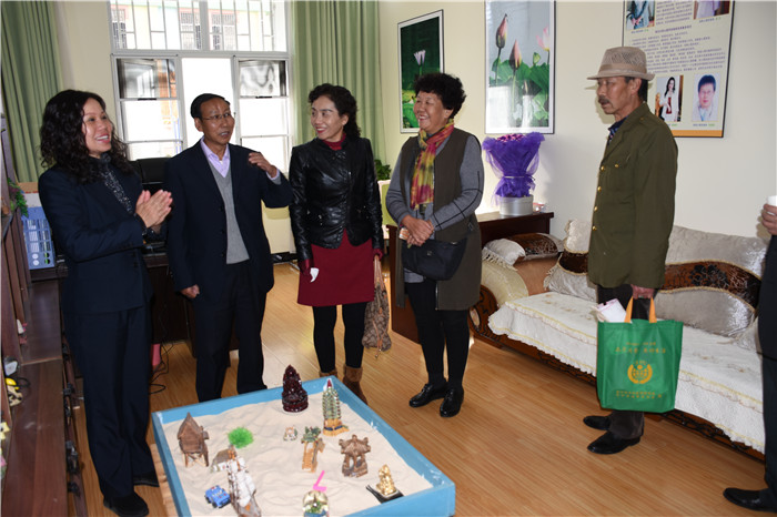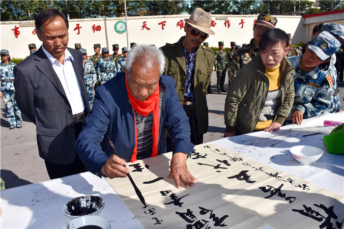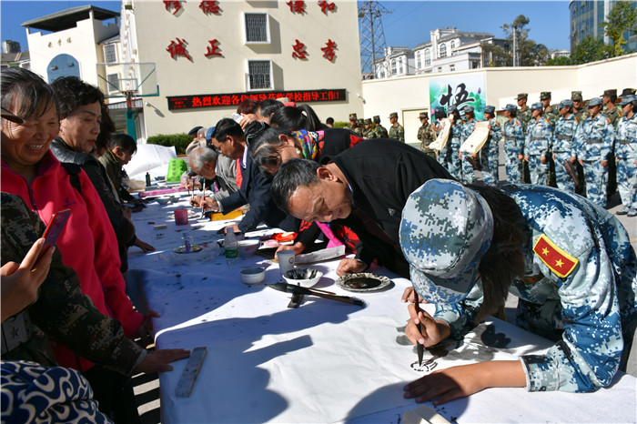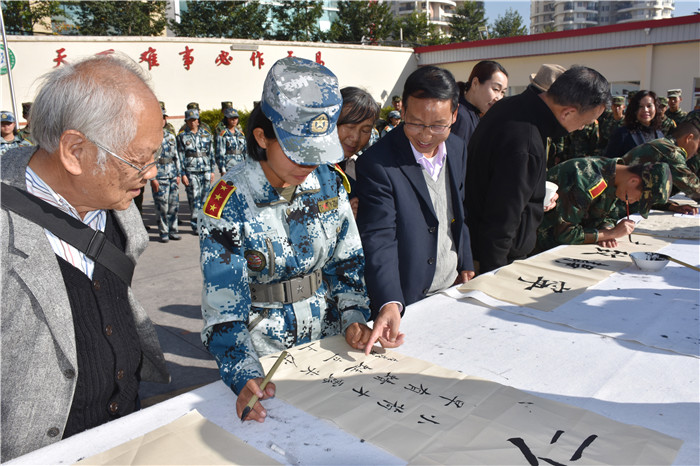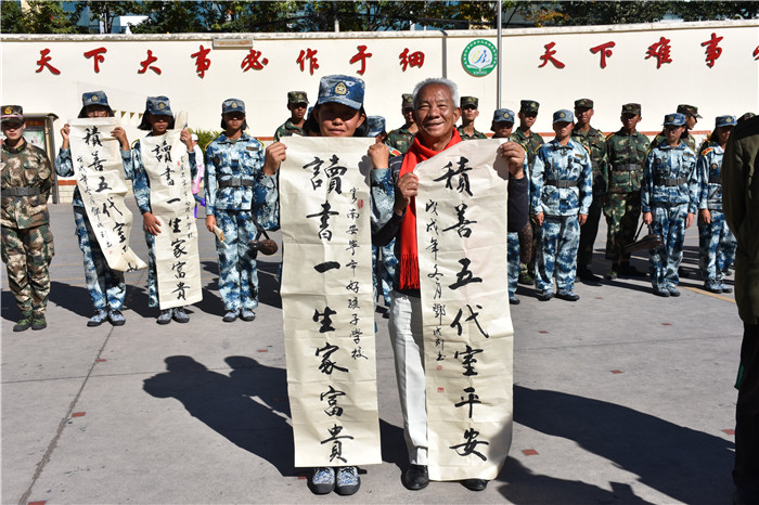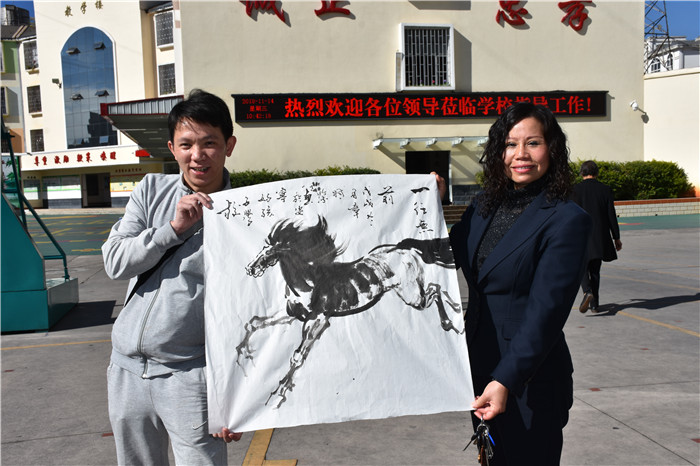 老領(lǐng)導們在指導孩子們書法的同時,還不時走到孩子們中間去,噓寒問暖。當和學校可愛的“小不點”聊天時,孩子的堅韌懂事,讓領(lǐng)導們很是欣慰。