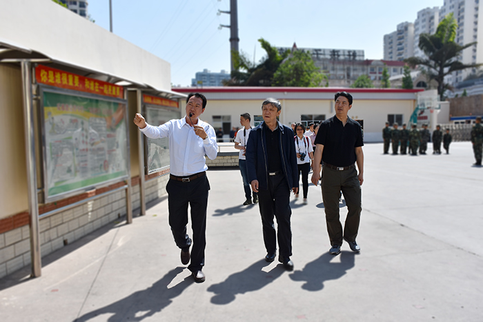 2019年4月19日上午,昆明市人大常委會黨組成員蘇宇率領市人大社建委主任和松華、副主任強東育、團市委書記郝國棟、市教育體育局副局長呂麗、市司法局法律事務處處長何茹等一行10人,在安寧市人大常委會黨組書記、主任尹貴生、安寧市人民政府副市長、市公安局局長劉文先等領導的陪同下蒞臨我校調(diào)研指導工作。