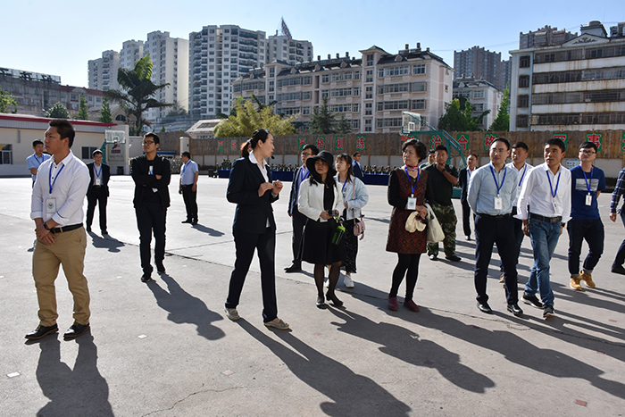 風(fēng)和日麗春意濃,花開(kāi)蝶舞景致新。2019年4月20日上午,四川師范大學(xué)附中安寧校區(qū)20余名校領(lǐng)導(dǎo)、老師在王佳瑞校長(zhǎng)的率領(lǐng)下,專(zhuān)程到我?疾旖涣。本次交流活動(dòng)由參觀(guān)校園、觀(guān)摩學(xué)生匯報(bào)表演兩部分組成。