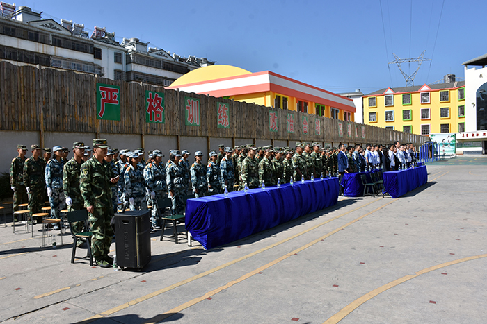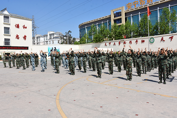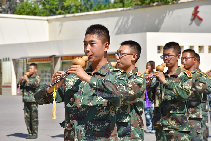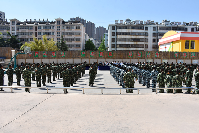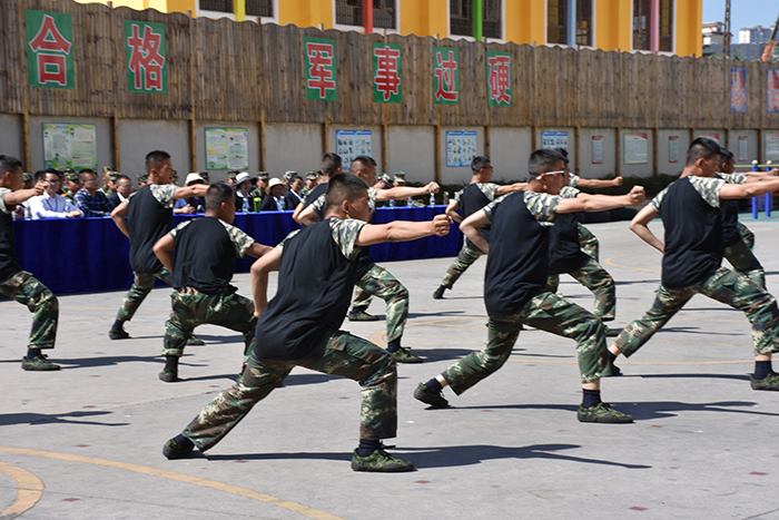 在教官的帶領(lǐng)下,我校男女生隊(duì)列、擒敵拳、棍術(shù)及棍術(shù)對(duì)打、軍體拳、葫蘆絲合奏《荷塘月色》、《女兵操》等方隊(duì)相繼出場(chǎng)。隊(duì)列方隊(duì)的同學(xué)們精神飽滿(mǎn)、口號(hào)響亮、步伐鏗鏘、隊(duì)形整齊,展現(xiàn)了良好的精神風(fēng)貌;棍術(shù)方隊(duì)的表演也深深吸引了大家的眼球,一招一式,一起一落,剛勁有力,被同學(xué)們演繹得淋漓盡致,帥氣瀟灑;軍體拳方隊(duì)的同學(xué)們也毫不遜色,出拳帶風(fēng),出腿起塵,踢腳勾拳,嫻熟連貫,展現(xiàn)了頑強(qiáng)拼搏和勇做時(shí)代弄潮兒的決心;葫蘆絲合奏的《荷塘月色》,清幽典雅,跟著旋律有如身臨其境,仿佛有種荷塘晚風(fēng)吹拂的清涼,一幅夏日荷塘月色的動(dòng)人畫(huà)卷頓時(shí)呈現(xiàn)在大家眼前,也傳遞出孩子們對(duì)淡雅事物的美好追求;女兵操表演剛?cè)岵?jì),歡快向上,展示出孩子們的健康與活力。即將啟程去川師大附中安寧校區(qū)任教的老師們表演的擒敵拳,則讓我們眼前一亮。歷時(shí)近一個(gè)月的訓(xùn)練,他們精氣神十足,精彩的表演,既向我校交了一份滿(mǎn)意的答卷,也向川師大附中安寧校區(qū)領(lǐng)導(dǎo)展示了攻堅(jiān)克難、率先垂范、團(tuán)結(jié)一心,不做出成績(jī)誓不罷休的決心。王校長(zhǎng)看后,非常欣慰。