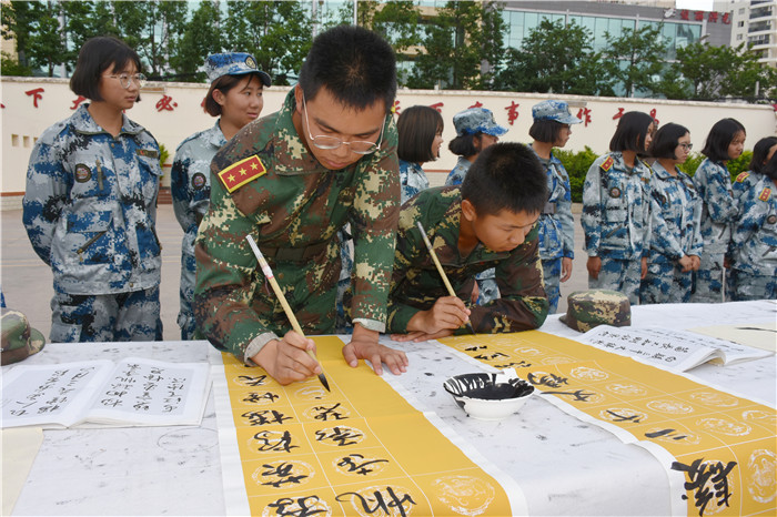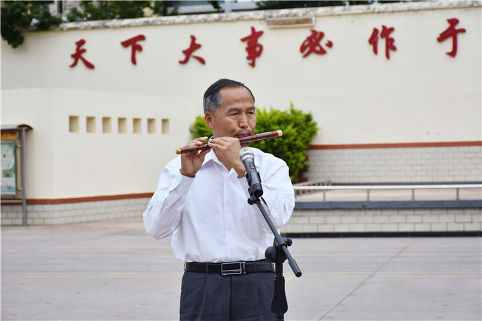 活動并未因此落下帷幕,而是進入了一場視覺與聽覺的盛宴,我校軍事方隊表演的《隊列》,拉開了聯誼匯演的序幕。孩子們標準的軍事動作,既是表演,也是日常訓練的檢驗;緊接著表演的手語《跪羊圖》,也讓我們看到了孩子們感恩的溫情內心世界;隨后,安寧關工委選送的笛子獨奏《我是一個兵》,讓大家耳目一新,歡快中不乏堅定;《太極扇》孩子們更是看得津津有味,只見表演者動作時而輕柔舒緩, 時而剛柔相濟,舉手投足,展示著中國太極功夫以柔克剛、虛實分明、輕靈沉穩(wěn)的意境;葫蘆絲獨奏悅耳的絲竹聲,更是無形間浸潤著孩子們的心田。其間,我校孩子們也用平時所學,用葫蘆絲合奏《荷塘月色》、女兵操《新時代》、第三套《擒敵拳》等向現場的各位領導展示著小軍人的風采,得到了領導們的一致好評。