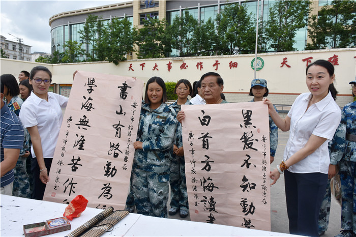 2020年6月27日上午,在安寧市關工委常務副主任李庭貴的帶領下,安寧市“五老”領導鄧成列(省勞模)、山萬偉、楊貴福、楊長生、徐繼泉(中國書法家),安寧市詩書畫二組朱正才等一行近30名退休老領導、老干部與我校共同開展“心系下一代,牽手筑未來”活動。
