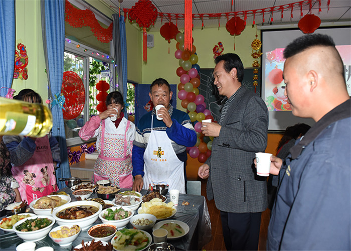 席間,魯校長還到孩子們身邊敬酒。孩子們看到校領(lǐng)導(dǎo)和老師們陪著自己過年,還親切關(guān)懷、噓寒問暖,心里的暖流滿溢。整個(gè)現(xiàn)場,其樂融融,充滿著喜慶祥和的氣氛。