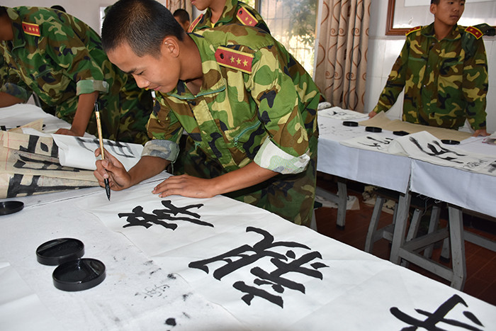 談到學校的書法活動,授課老師韋昌毅頗有感觸,他說道:“好孩子學校書法進課堂在校園內(nèi)深入開展,學生的軟筆書寫都越來越規(guī)范了,學習態(tài)度也越來越端正了。書法進課堂的目的并不是為了培養(yǎng)書法家,而是為了讓學生在書中領悟做人的道理,激發(fā)學生對祖國傳統(tǒng)文化的熱愛之情。孩子們在長期的書法練習中,需要靜心、細心和恒心,而這,恰恰能影響孩子的一生。學校領導每年投入上萬元為學生配備筆、墨、紙、硯等書法教學用品,除常規(guī)的課堂,還每月定期開展比賽,且每次都開展得有聲有色,讓書法教育進課堂工作真正落到了實處,是相當接地氣的!