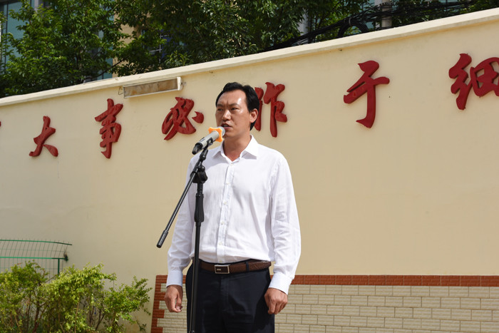 上午9時30分,升旗儀式正式開始,師生們肅立注目,伴隨著莊嚴的國歌聲,鮮艷的五星紅旗在嶄新的校園里冉冉升起。儀式上,魯校長充分肯定了新校區(qū)建設和搬遷工作,勉勵同學們在新的校園應該有新的目標和新的氣象,堅定理想信念,端正學習態(tài)度,培養(yǎng)良好習慣,嚴格要求自己,學會自我管理,樹立正確的人生觀、價值觀。在學校做到政治合格、軍事過硬,傳承好孩子學校的優(yōu)良傳統(tǒng)作風,發(fā)揮特長,真正改變自己。走向社會,做一名有理想、有文化、有道德、有紀律的合格公民。