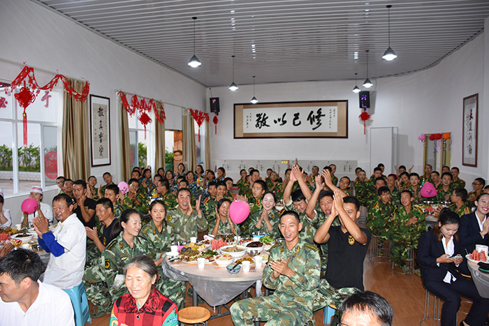 大家一邊享用佳肴,一邊聊天,歡聲笑語此起彼伏,真情的敬酒環(huán)節(jié)也高潮迭起,就在這一刻,餐廳里響起一陣歡快的生日歌,老師悄悄地把蛋糕和長壽面送到(宗毅濤、李盈鋒)等兩名同學(xué)的身邊,兩個孩子激動地站起來,含著淚水擁抱著老師,原來今天是他們的生日,掌聲和歡呼聲再次熱烈地響起,全校師生陪伴兩名同學(xué)度過了一個特別的生日。