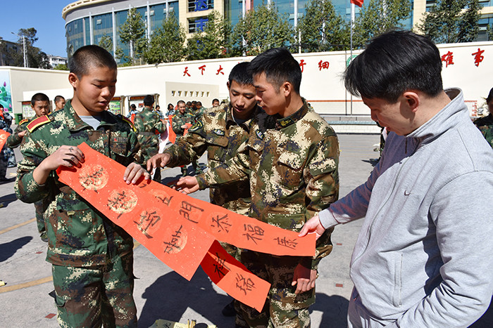當書法老師韋昌毅把春聯(lián)準備好,宣布活動正式開始時,孩子們一個個躍躍欲試,準備大顯身手。