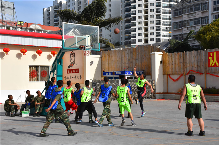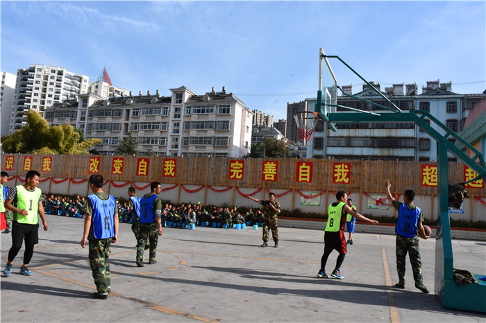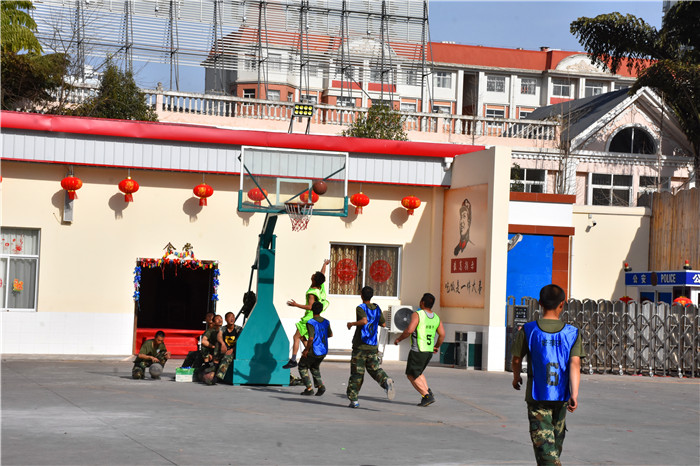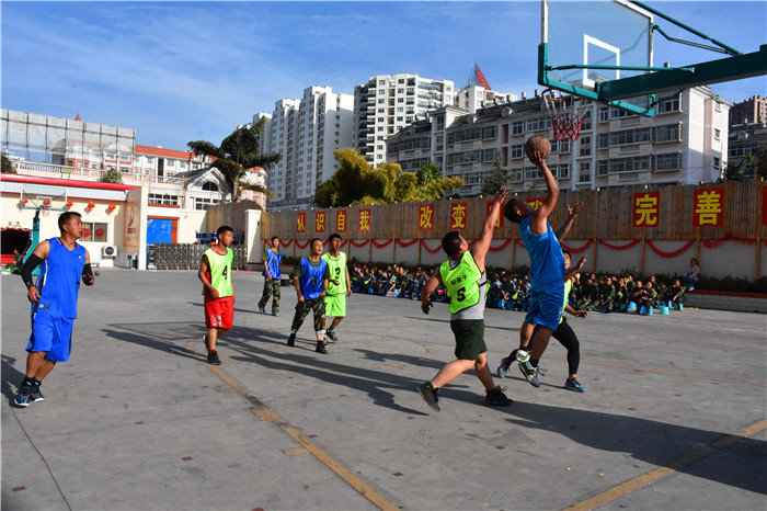 下午是師生籃球比賽。在球場上,隊員們頑強拼搏,互相配合,只見他們投籃、搶籃板、進攻、防守,將場上的氣氛一次次推向高潮。場下的啦啦隊員連連為比賽隊員加油打氣,吶喊助威!