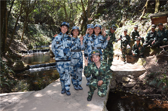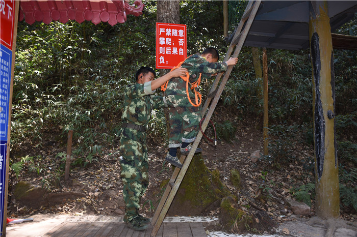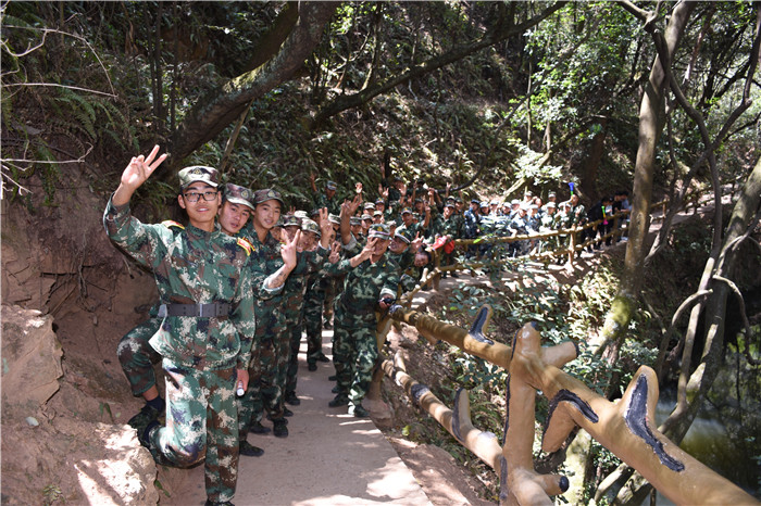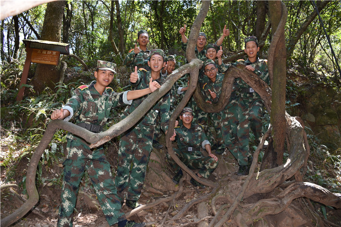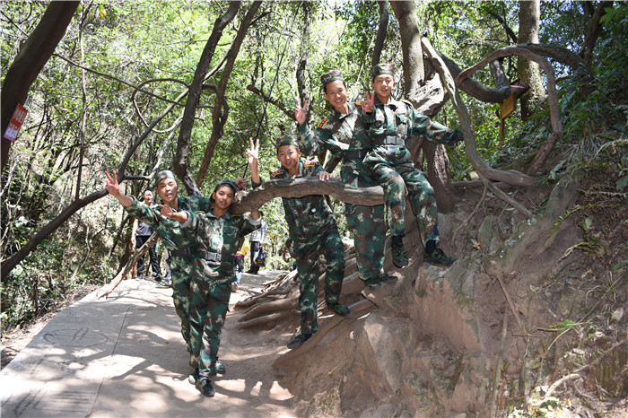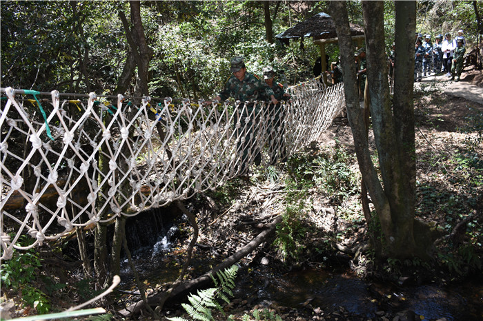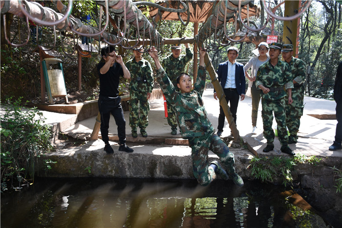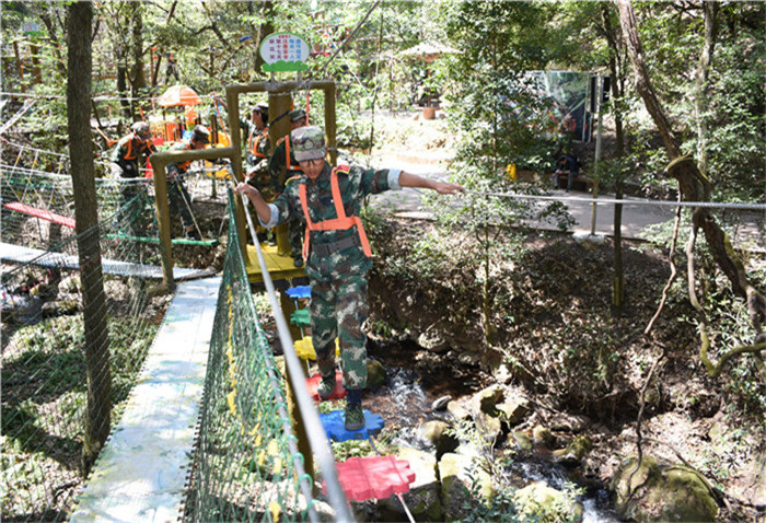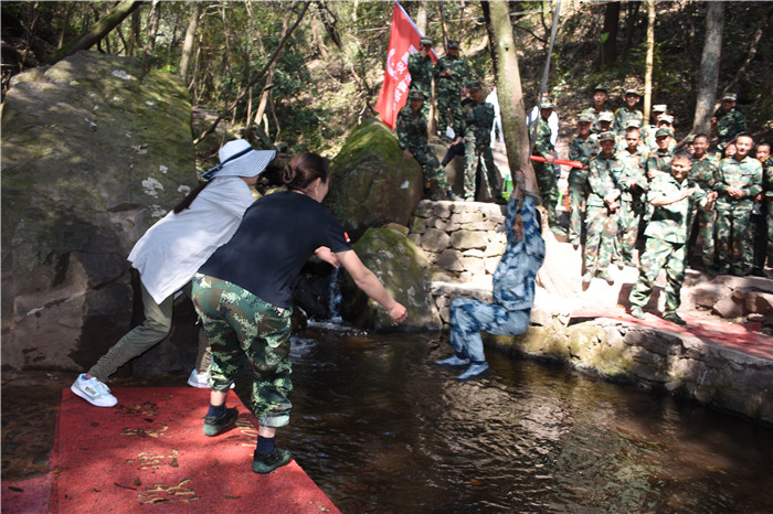 在老師們的帶領(lǐng)下,大家沿著山間的石板路,首先到達(dá)了第一個項目挑戰(zhàn)點——水上蕩繩(也叫笑料陷阱),孩子們在老師的耐心講解和示范后,相繼進(jìn)行了挑戰(zhàn)。有的輕松自如,動作規(guī)范;有的驚險蕩過,虛驚一場;有的蜻蜓點水,老師巧妙護(hù)住。在結(jié)束第一個項目后,緊接著挑戰(zhàn)了“臂力渡河”,這個項目難度系數(shù)增大,為了安全起見,老師下水保護(hù),挑戰(zhàn)成功的同學(xué)一臉興奮,挑戰(zhàn)不成功的也不氣餒,大聲說著要再來一次,F(xiàn)場加油聲、歡呼聲此起彼伏,氣氛格外熱烈。隨后進(jìn)行的是“叢林穿越”,孩子們分為兩列縱隊興高采烈地沿溪而上,一條長龍穿梭在山谷之中,和煦的陽光透過稠密的樹葉灑落下來,點點金色的光斑倔強(qiáng)地映照在孩子們喜笑顏開的臉上,清脆的歡笑聲在山谷間回蕩。大家邊走邊在自己喜歡的地方,擺出不同的姿勢,和小伙伴們留下最珍貴的回憶。清幽的山谷,呈現(xiàn)出一幅人與自熱和諧相處的畫面。