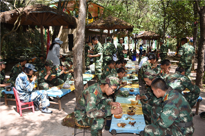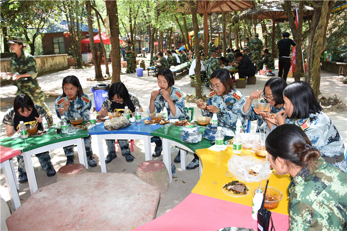 很快到了午餐時間,老師們把早早就精心準(zhǔn)備好的各種美食(涼卷粉、鹵牛肉、鹵雞腳、鹵雞蛋、涼拌菜及牛奶、木瓜水、水果)等分發(fā)到每一位孩子手中。雖然一早的挑戰(zhàn)項目讓大家有了些許疲憊,但在美食面前,在涼爽的綠蔭下,孩子們一個個像小饞貓一樣開心地吃起來,所有的勞累頓時煙消云散。飯后,孩子們還主動地把用餐過程中所有的垃圾全部清理干凈,爭當(dāng)文明小公民。