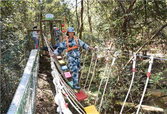 下午,孩子們在“峽谷森林最美拓展大本營”又開始了一系列的高空挑戰(zhàn)項目,體驗了這條“最美森林冒險之旅”的時光隧道、鐵索連環(huán)、生命之門、單側(cè)過網(wǎng)等30個驚險刺激關(guān)卡,其間還能看到彩蝶翩躚,藤蔓纏繞,腳下是清澈的山澗溪流。這是全國首個在峽谷森林中獨創(chuàng)、全程網(wǎng)絡(luò)化管理運(yùn)行的拓展大本營,全長286米,全程趣味十足。雖然在挑戰(zhàn)過程中,有的孩子有過膽怯、有過害怕,但在老師們響亮的加油打氣聲中,孩子們沒有一個退縮、沒有一個放棄,憑借著頑強(qiáng)的毅力、堅定的信念,全部通過了重重難關(guān)考驗。
