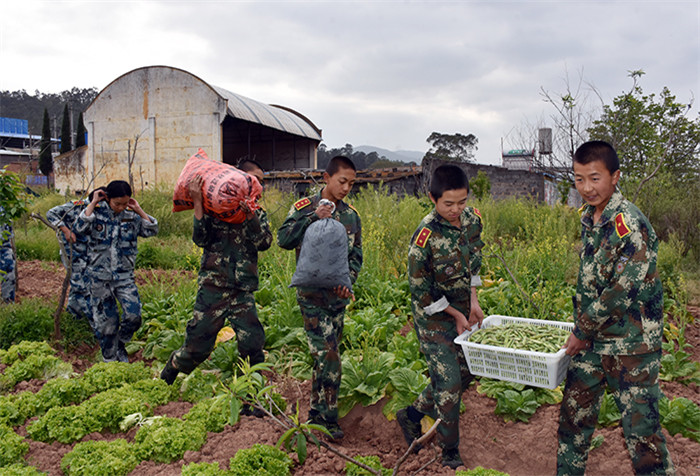 在老師的帶領(lǐng)下,孩子們興奮地走進(jìn)農(nóng)場開始干活。拔雜草、鋤地、澆水、摘蠶豆、豌豆、摘生菜、香菜..... 別看有的孩子年齡小,可干起活來十分帶勁,一個(gè)個(gè)忙得不亦樂乎。看著孩子們忙碌的身影,總教官毛積敏樂得呵呵直笑。