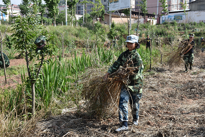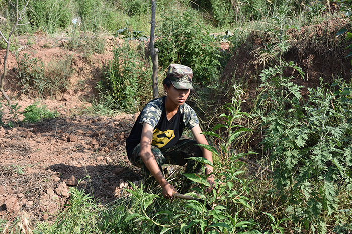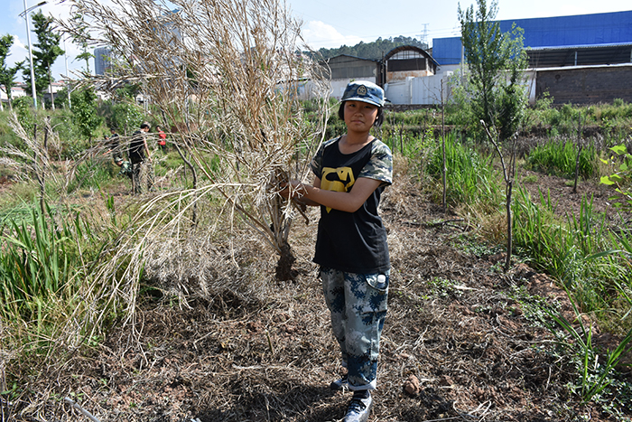 孩子們歡心雀躍地來到種植基地,在老師的帶領(lǐng)下,開始清理過季的油菜梗。太陽毫不留情地曬著他們的脊背,汗水一次次浸濕了他們的衣衫,但孩子們咬著牙,默默地堅持著。有的孩子生怕被落下,扔掉鐮刀用手將油菜梗連根拔起,一大片油菜田就這樣被他們征服了。