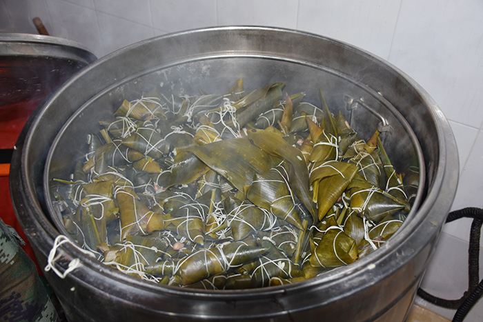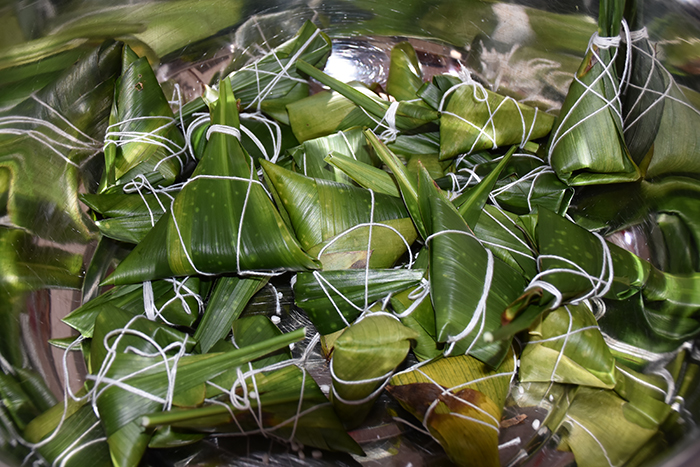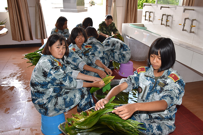 早點(diǎn)過后,師生們準(zhǔn)備好了所有材料,同學(xué)們在老師的指導(dǎo)下,清洗粽葉,準(zhǔn)備包粽子。不一會兒,所有材料準(zhǔn)備就緒,大家就開始包起粽子。細(xì)長的粽葉在師生們靈活的手指下團(tuán)成漏斗狀,糯米合著花生、火腿被包進(jìn)粽葉中,一根根細(xì)彩線纏繞在粽子上。折粽葉、填糯米、裹葉子、系線,一時間粽葉飛舞,絲線穿梭,一個個玲瓏而秀氣的粽子不一會兒便誕生了,在這過程中,大家還交換了如何把粽子包的更漂亮、更有型的心得。大家一邊包粽子,一邊分享著端午這一傳統(tǒng)節(jié)日的故事;顒蝇F(xiàn)場一片歡騰,笑聲連連,整個餐廳沉浸在一片歡樂的海洋里。
