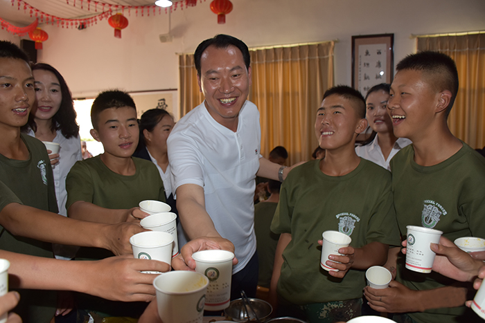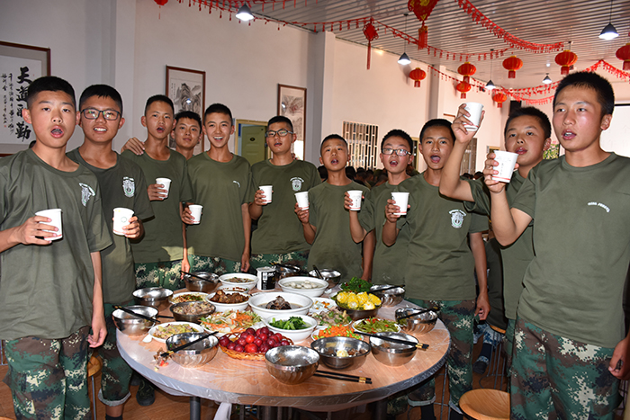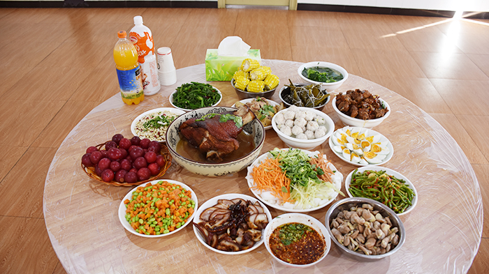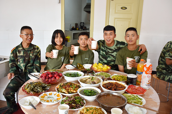 傍晚,一桌桌色香味美的飯菜全部就緒,粽子也蒸熟了,同學(xué)們興高采烈地一盤一盤端上桌,大家圍坐在一起,看著自己的勞動果實(shí)說著、笑著!過一會兒,魯植校長發(fā)表了節(jié)日祝賀和熱情洋溢的講話:“今天的端午不一樣,希望孩子們在沒有家人陪伴的節(jié)日里,能夠更深刻地認(rèn)識到親人的重要性;在沒有踏青旅游的節(jié)日里,能夠用足夠的時間改變自己,在學(xué)校完成學(xué)習(xí)目標(biāo),追求自己的人生理想……”聽到校長的祝愿,同學(xué)們掌聲不斷。開席后,孩子們吃著豐盛的晚餐、品嘗著獨(dú)特香味的粽子,不時向老師道祝福,和同學(xué)相共勉。在攝像機(jī)的鏡頭下,孩子們還爭先恐后地向遠(yuǎn)方的爸媽送祝福,希望他們端午安康!