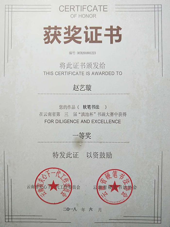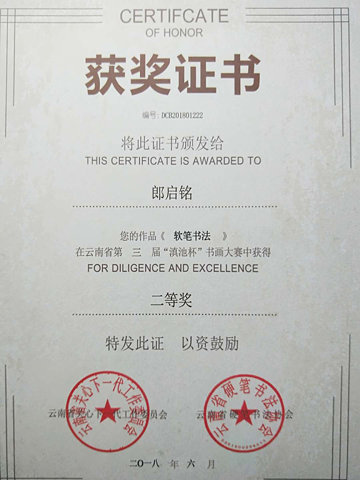 2018年6月,我校部分學(xué)生積極參加了由云南省關(guān)心下一代工作委員會組織的云南省第三屆“滇池杯”書畫大賽活動。
