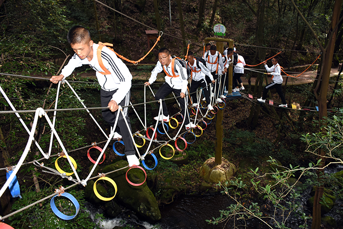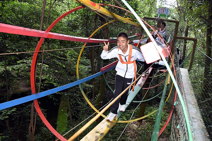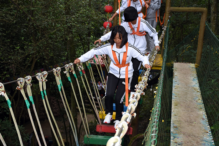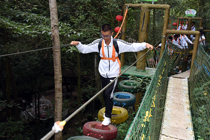 這是全國(guó)首個(gè)在峽谷森林中獨(dú)創(chuàng)、全程網(wǎng)絡(luò)化管理運(yùn)行的拓展大本營(yíng),全長(zhǎng)286米,全程趣味十足。雖然在挑戰(zhàn)過(guò)程中,有的孩子有過(guò)膽怯、有過(guò)害怕,但在老師們響亮的加油打氣聲中,在同學(xué)的互幫互助下,孩子們沒(méi)有一個(gè)退縮、沒(méi)有一個(gè)放棄,憑借著頑強(qiáng)的毅力、堅(jiān)定的信念,全部通過(guò)了重重難關(guān)考驗(yàn)。