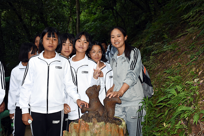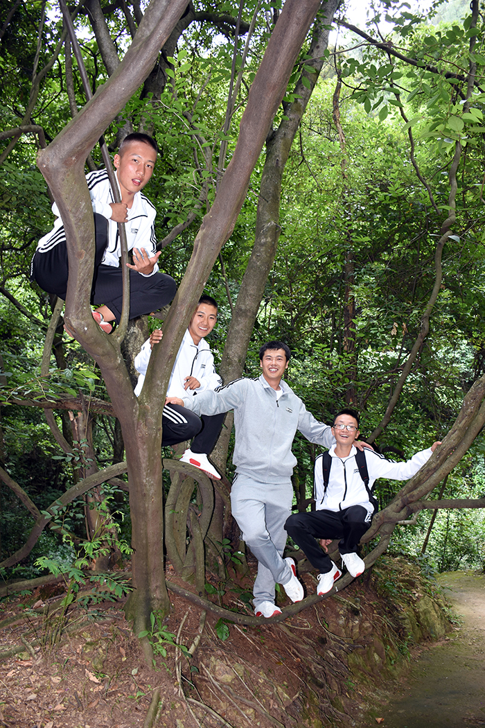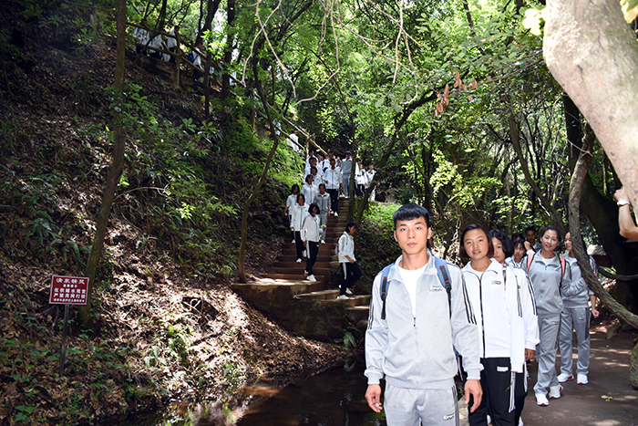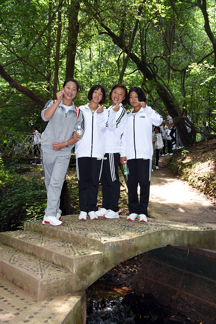 下午進(jìn)行的是“叢林穿越”。孩子們分為兩列縱隊(duì)興高采烈地沿溪而上,一條長(zhǎng)龍穿梭在山谷之中,和煦的陽(yáng)光透過(guò)稠密的樹(shù)葉灑落下來(lái),點(diǎn)點(diǎn)金色的光斑倔強(qiáng)地映照在孩子們喜笑顏開(kāi)的臉上,清脆的歡笑聲在山谷間回蕩。大家邊走邊在自己喜歡的地方,擺出不同的姿勢(shì),和小伙伴們留下最珍貴的回憶。清幽的山谷,呈現(xiàn)出一幅人與自熱和諧相處的畫面。