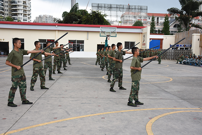 基本的隊(duì)列表演完畢后,女生方隊(duì)進(jìn)行了《女兵操》表演,鏗鏘亦溫柔,舉手投足間煥發(fā)出勃勃生機(jī),將會(huì)操表演推向了高潮。男生方隊(duì)也毫不遜色,擒敵拳、棍術(shù)更是勢(shì)如霹靂,強(qiáng)健的體魄展現(xiàn)出堅(jiān)定的意志,自律自強(qiáng)的品質(zhì)中綻放出青春的色彩,展現(xiàn)了當(dāng)代軍人的風(fēng)采。