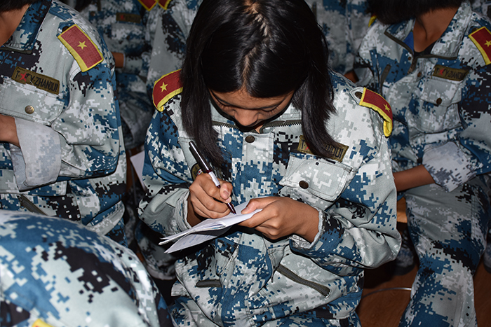 小故事,大道理。聽完“老教授”的回答,孩子們?nèi)粲兴。人格的較量?那是怎樣的一種較量?帶著疑問,周老師從人格的定義及心理特征、常見的人格缺陷及調(diào)節(jié)、怎樣塑造健全人格等方面闡述,孩子們聚精會(huì)神地跟著周老師了解了氣質(zhì)、能力、性格等多方面的內(nèi)容。通過60道氣質(zhì)測(cè)驗(yàn)題,更是全面了解了自己是個(gè)什么樣的人。