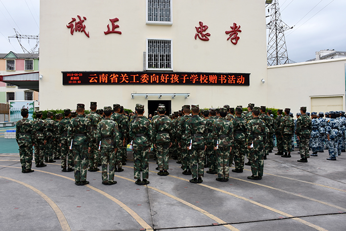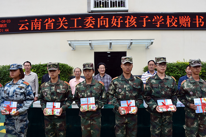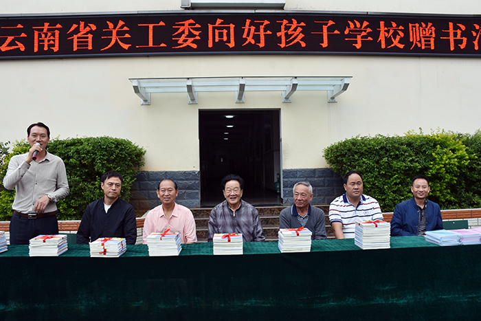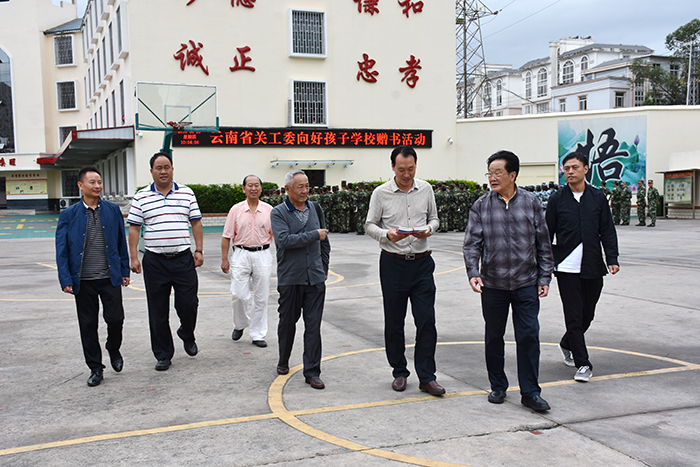2018年8月23日上午,云南省關(guān)工委常務(wù)副主任鮑德珠、云南省青少年思想道德研究會會長陳志國、昆明市關(guān)工委副主任管宏亮、云南省關(guān)心下一代基金會理事長陳學江、核心價值觀圖書捐贈活動辦公室主任賈西越、北京愛接力慈善基金會副秘書長郭建峰等領(lǐng)導一行6人蒞臨我校捐贈圖書。