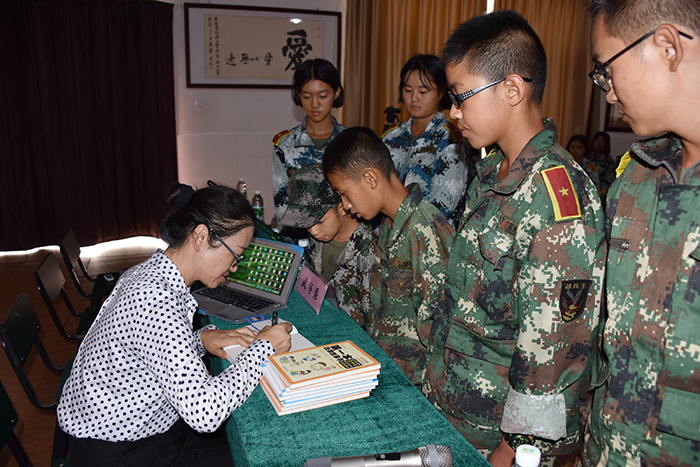 活動(dòng)尾聲,武律師還親自在隨身攜帶的法律書籍上簽名,獎(jiǎng)勵(lì)課堂中踴躍發(fā)言的同學(xué),并勉勵(lì)大家:“同學(xué)們正值青春年少,處于人生的花季,希望你們?cè)诜ㄖ频乃{(lán)天下認(rèn)真學(xué)法、知法守法,從生活中的小事做起,對(duì)自己嚴(yán)格要求,在法律的保護(hù)下健康成長(zhǎng)、成人成才!”