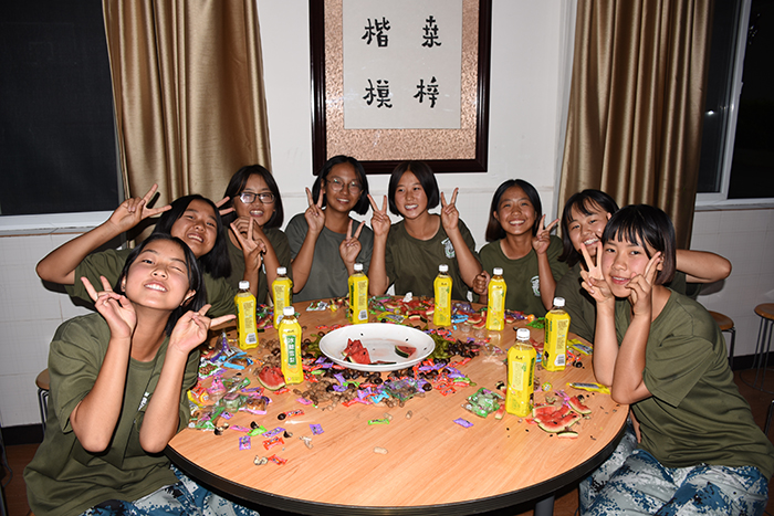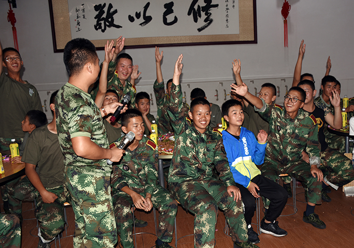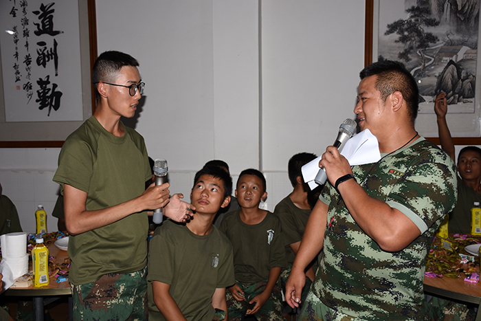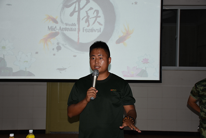 其間,晚會(huì)的主持人(副總教官王濤)把有趣的“猜謎語(yǔ)”貫穿其中,大家爭(zhēng)前恐后舉手搶答,或討論、或冥思,就為猜出謎底那一刻的滿足,拿到獎(jiǎng)品的那份開(kāi)心。整個(gè)晚會(huì),孩子們一邊吃著老師們精心在家樂(lè)福挑選的月餅、果汁、零食,一邊欣賞著精彩紛呈的節(jié)目,樂(lè)在其中,氣氛非常熱烈。