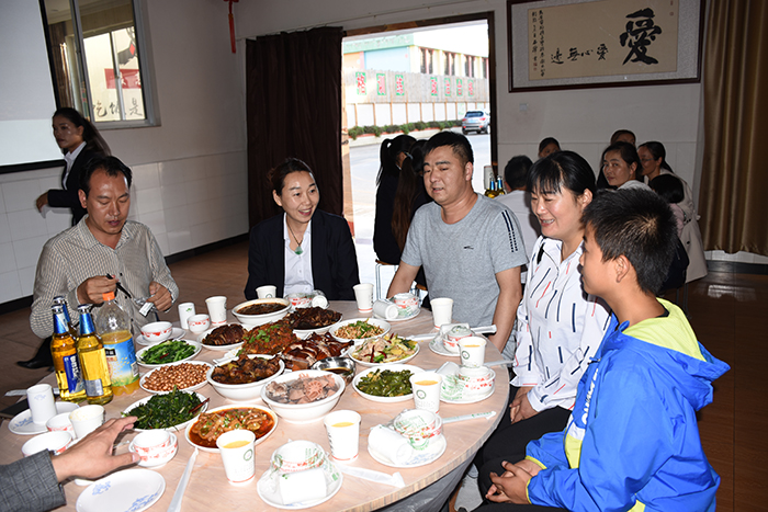 隨后,在魯校長(zhǎng)一聲“開(kāi)席”的令下,大家開(kāi)心地一邊品嘗著佳肴,一邊舉杯相互表達(dá)節(jié)日的祝福,只聽(tīng)見(jiàn)一浪高過(guò)一浪的“祝爸爸媽媽中秋節(jié)快樂(lè)”、“祝全體師生中秋節(jié)快樂(lè)”的祝福響徹餐廳。席間,魯校長(zhǎng)還帶領(lǐng)校領(lǐng)導(dǎo)親切地走到孩子們中間敬茶,和大家聊家常、話祝福。當(dāng)走到學(xué)校的兩個(gè)“小不點(diǎn)”身旁時(shí),魯校長(zhǎng)情不自禁地說(shuō)著“你們長(zhǎng)高了,也更懂事了”,還不時(shí)比劃著他們?nèi)胄R詠?lái)的身高差?粗虒W(xué)中嚴(yán)厲的校長(zhǎng),生活中卻是如此關(guān)切地噓寒問(wèn)暖、和藹可親,像父母,又像兄長(zhǎng),也像朋友,同學(xué)們頓時(shí)覺(jué)得非常溫暖。
