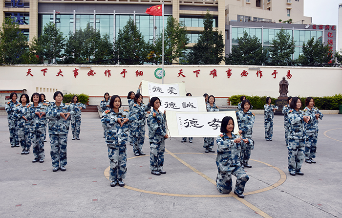 分列式的同學(xué)們步伐鏗鏘、隊(duì)形整齊、口號(hào)嘹亮、自信昂揚(yáng),展現(xiàn)了良好的精神風(fēng)貌;擒敵拳方陣的同學(xué)們也毫不遜色,剛勁有力的踢腳勾拳,嫻熟連貫的軍體動(dòng)作,展現(xiàn)了頑強(qiáng)拼搏和勇做時(shí)代弄潮兒的決心;女生方隊(duì)的手語(yǔ)操《三德歌》,更是把孝德、誠(chéng)德、愛(ài)德的中華民族優(yōu)秀傳統(tǒng)美德表現(xiàn)得淋漓盡致。大家不禁心潮澎湃,日常的苦與累,值!