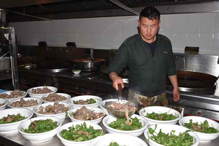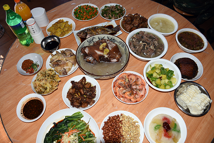 為了準(zhǔn)備豐富的年夜飯,老師和同學(xué)們從上午就開(kāi)始忙碌著,一起幫學(xué)校廚師們打下手。同學(xué)們有的撿菜,有的洗碗,有的洗菜......到了下午,一盤(pán)盤(pán)色香味俱全的菜肴就呈現(xiàn)在大家面前,伴隨著隆隆的鞭炮聲,年夜飯開(kāi)始了。