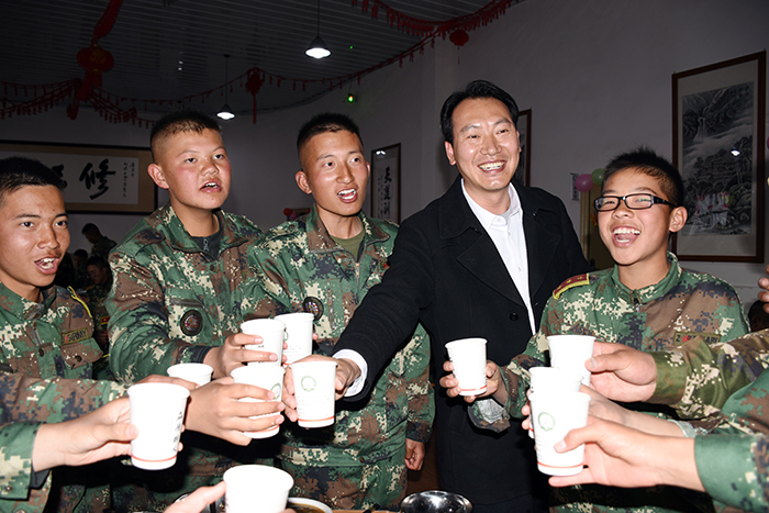首先,學(xué)校魯植校長(zhǎng)向大家致以新春的問(wèn)候并舉杯敬茶,他希望通過(guò)學(xué)校所做的一切工作,讓孩子們?cè)谶@里過(guò)一個(gè)年味十足、意義非凡的春節(jié)。同時(shí),魯校長(zhǎng)也勉勵(lì)孩子們?cè)谶@里要好好學(xué)習(xí),做一個(gè)真正身心健康的好學(xué)生、好孩子。