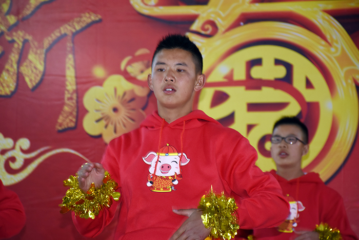 隨后,由學(xué)生王璐瑤、王佳曉和老師李月、王清恒主持的舞蹈、小品、朗誦、獨(dú)奏等14個(gè)精彩節(jié)目輪番登場。伴隨著一班、三班、十六班帶來的開場舞《恭喜發(fā)財(cái)》,晚會(huì)正式拉開帷幕,大家在熱情的旋律中開心地感受著濃郁的過年氛圍。