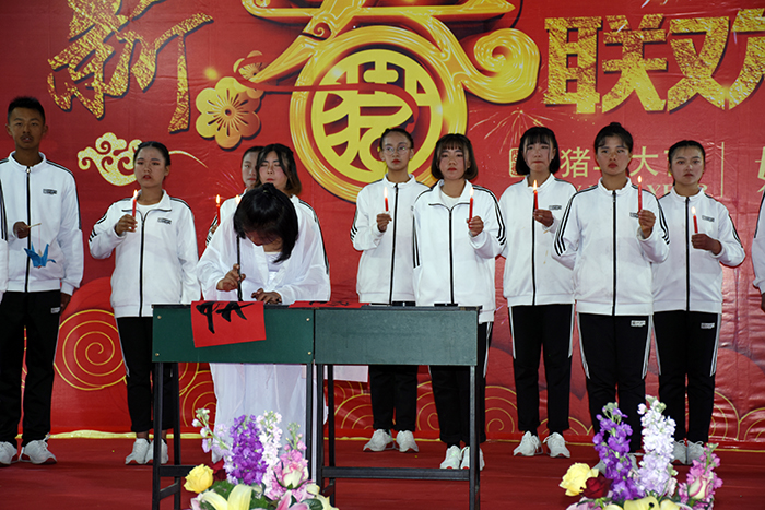 晚會(huì)歷時(shí)兩個(gè)半小時(shí),在節(jié)目開始前,魯校長首先做了新年致辭,回顧了過去一年學(xué)校開拓進(jìn)取、改革創(chuàng)新所做的標(biāo)志性大事:組織老師到北京、山東、深圳、廣東、湖南、重慶等地開展交流研學(xué),帶領(lǐng)同學(xué)走向國際大都市香港、澳門、三亞等地游學(xué)。學(xué)校踏上從校內(nèi)改革走向校外改革、從省內(nèi)改革走向國際改革、從內(nèi)部活動(dòng)走向外部活動(dòng)的嶄新征程。同時(shí),魯校長殷切希望同學(xué)們從行動(dòng)上體現(xiàn)出來,在這里好好學(xué)習(xí),熱愛學(xué)校、尊重老師、感恩父母、為自己的人生目標(biāo)努力奮斗,超越之前的師哥師姐,贏在轉(zhuǎn)折點(diǎn)。最后,魯校長衷心祝愿全體師生以及家長新年快樂、萬事吉祥!