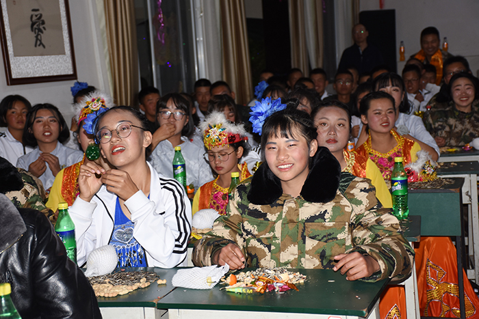 十二班表演的極具民族特色的彝族舞蹈《阿細(xì)跳月》,一出場就吸引了大家的眼球,一群彝族阿哥阿妹熱情似火地翩翩起舞,他們舞出了彝族人民的淳樸好客,更舞出了對美好生活的無限向往。
