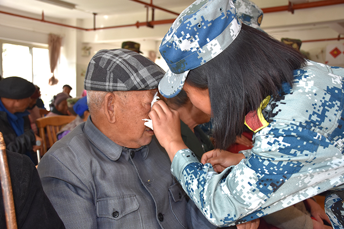 在和每位老人依依惜別時,一個個軍禮,代表著孩子們對老人的敬重,老人們一句句夸贊與叮囑,更鞭策著孩子們要好好做人,好好學習,做新時代的接班人。