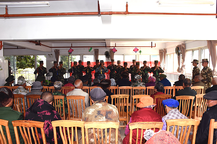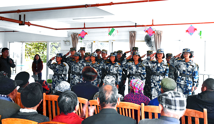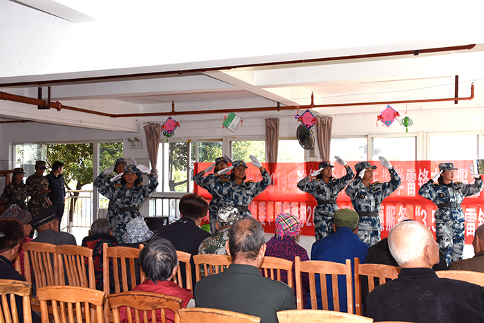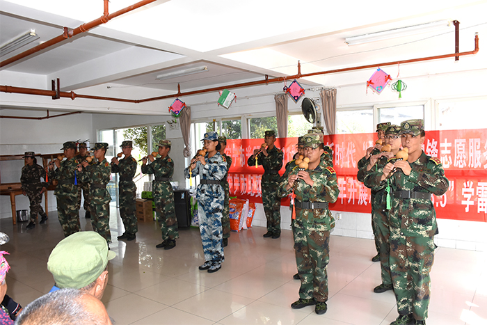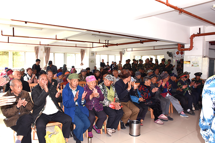 離別時,孩子們用在校所學的葫蘆絲為老人們演奏了《荷塘月色》,瀟灑歡快地表演了《女兵操》,有的孩子還大膽上臺深情獨唱《異鄉(xiāng)人》,來自深圳的同學則用純正的粵語演唱了《光輝歲月》,最后還一起唱響了《學習雷鋒好榜樣》,共同祝福老人們身體健康,平安快樂。老人們聽后非常感動,不約而同地為孩子們豎起了大拇指,敬老院里不時有歡聲笑語傳出,讓暖陽下的敬老院格外溫馨。