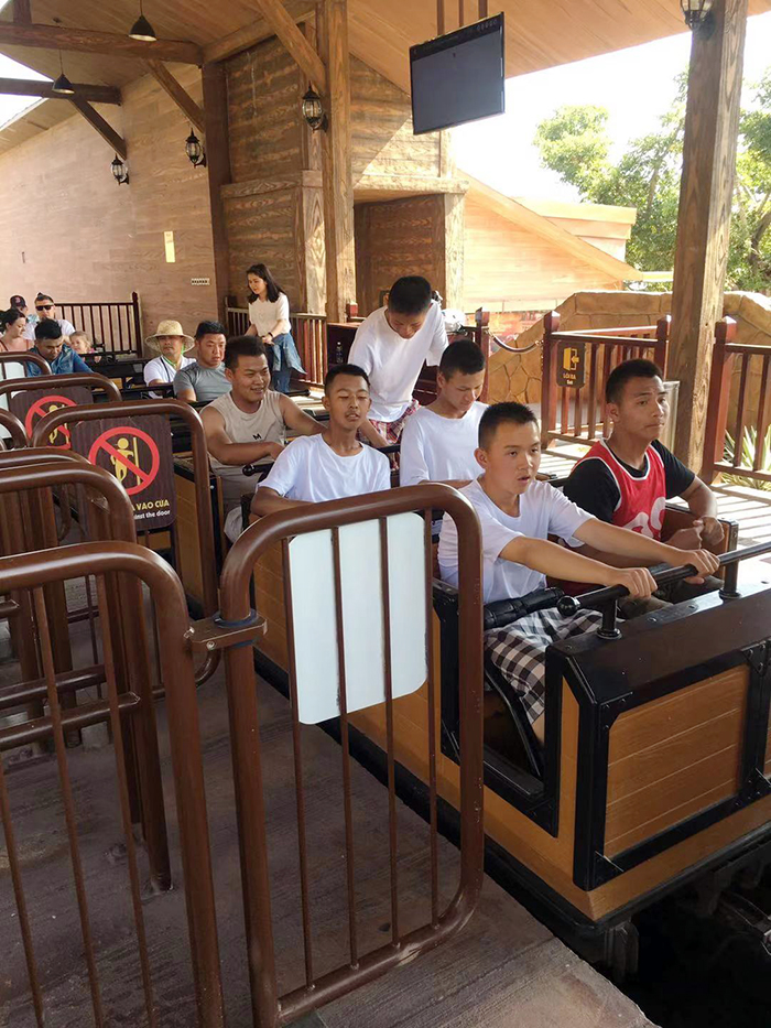 6日上午,在市區(qū)盡情享受了越南“三寶”(法棍、米粉、春卷)的美食后,孩子們便乘坐3千多米的跨海纜車直抵珍珠島,開始驚險(xiǎn)刺激的高山索道飛車、大擺錘、跳樓機(jī)、過山車、采礦小火車等挑戰(zhàn),也許是因?yàn)槟贻p或是勇敢,有的項(xiàng)目玩過一次,孩子們還想玩第二次、第三次......玩得根本停不下來。