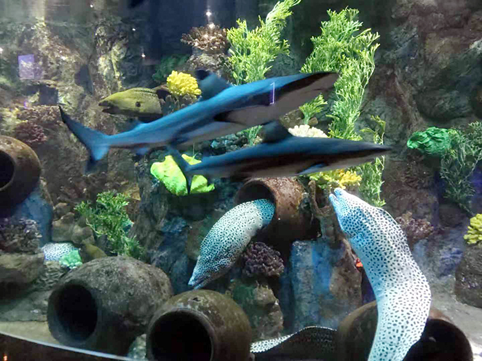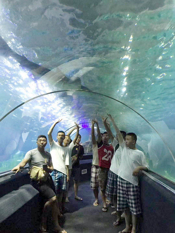 在經(jīng)過一段時(shí)間的休閑放松后,孩子們又開始了室內(nèi)電玩——碰碰車的一次次溫柔對(duì)峙。玩得精疲力盡后,還是不愿停下腳步,而是徑直到了水族館,在海底長(zhǎng)廊里,以空間立體角度去觀賞礁叢中袖珍的海馬、可愛的小丑魚、鮮艷的?雀鞣N各樣的海洋生物,置身其中,仿佛置身于海底世界。一波一波的快樂余溫還未褪去,又被4D的水幕電影俘虜了眼球,震撼的表演讓孩子們連連尖叫不斷。