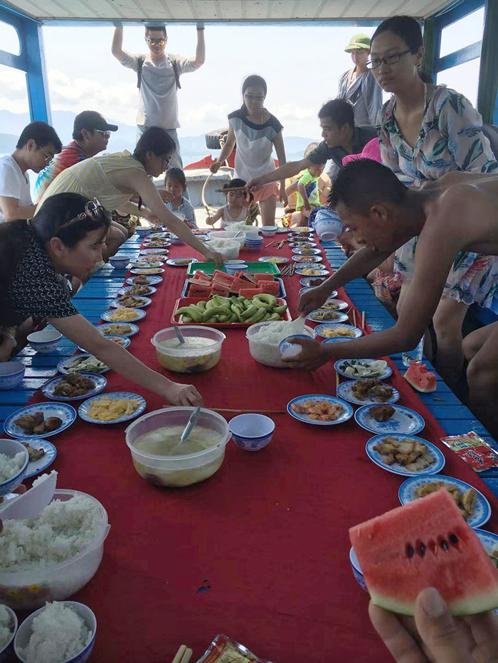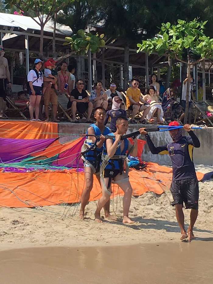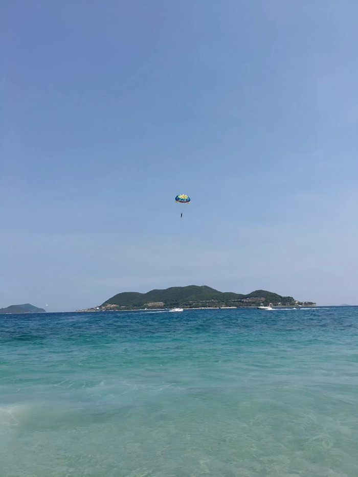 8日上午,孩子們興致勃勃地坐著木船出海到“竹島”游泳、曬太陽(yáng),并在船上享用美味的海鮮風(fēng)味餐,真是寧?kù)o時(shí)光的無(wú)盡享受。隨后又去“黑島”玩水上降落傘,陸續(xù)起飛的降落傘不斷從水上的高空飄過,紅黃相間的大傘鼓滿了風(fēng)帆,在碧海藍(lán)天之間劃出了靚麗的弧線。俯瞰深藍(lán)的芽莊大海,像是鳥兒一般在自由自在的飛行。
