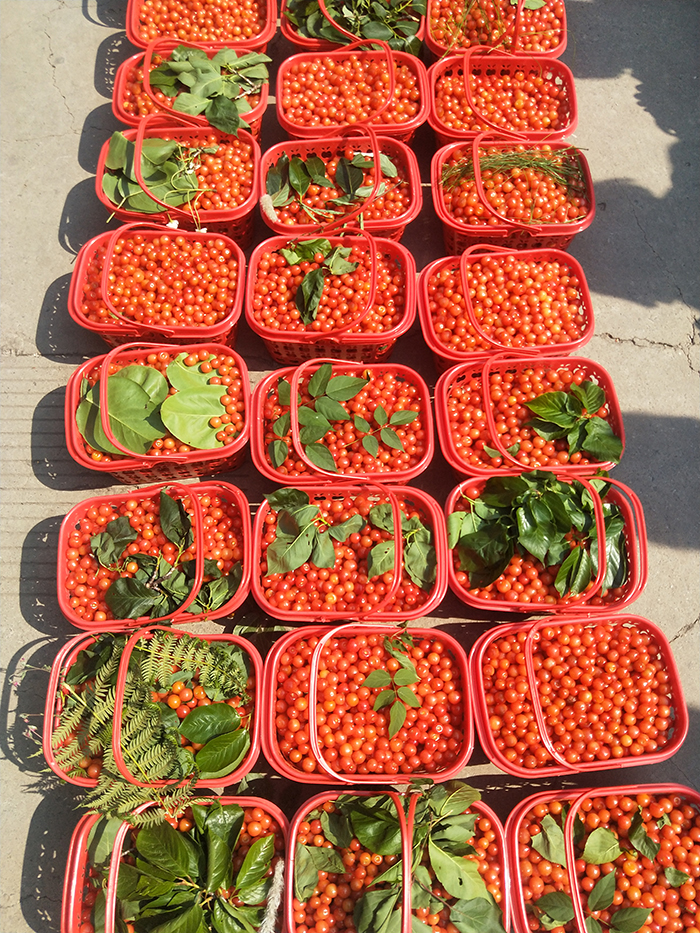 經(jīng)過幾小時的辛苦勞作,一筐筐鮮美紅嫩的櫻桃就呈現(xiàn)在了大家面前,看著就讓人垂涎欲滴。離園時,孩子們的眼睛還不由自主地盯著它們,恨不得把樹都移回學(xué)!烧獧烟沂抢蠋熀⒆佣枷矏鄣奶で囗椖,不僅貼近自然,還能享受采摘的樂趣,邊吃邊摘,再帶一些回去,幸福而又滿足。