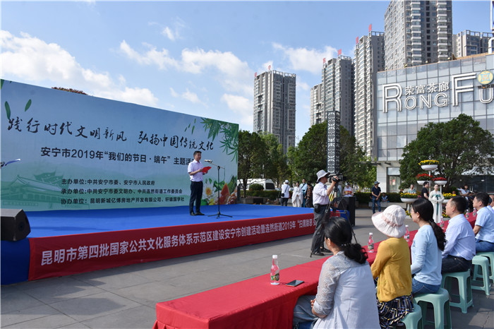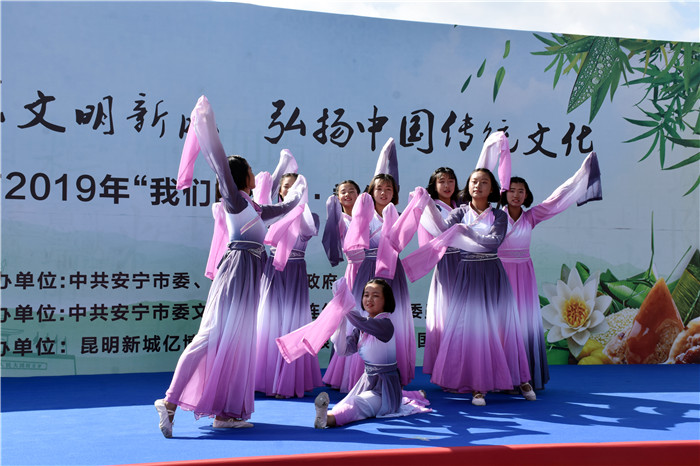 在端午節(jié)前一天,由中共安寧市委、安寧市人民政府主辦,中共安寧市委文明辦、中共連然街道工作委員會(huì)承辦的2019年“我們的節(jié)日•端午”主題活動(dòng)在東湖廣場(chǎng)舉行。我校受邀參加,并組織部分女生到現(xiàn)場(chǎng)表演了古典舞蹈《端午•屈原》,孩子們漂亮的服飾、優(yōu)美的舞姿、燦爛的笑容贏得了臺(tái)下雷鳴般的掌聲。