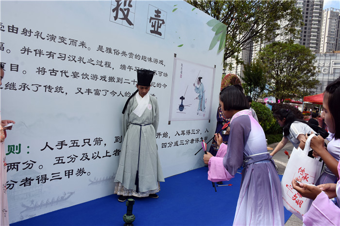 表演結(jié)束后,同學(xué)們還饒有興致地到遙岑樓書(shū)院參觀,臭美留影。隨后又興致勃勃地參加了 “旱地龍舟、投壺、漢服體驗(yàn)”等多個(gè)端午主題游園游戲。孩子們玩得十分開(kāi)心,每個(gè)游戲都全情投入,贏得了不少獎(jiǎng)券,兌獎(jiǎng)時(shí),幸福難以言表;顒(dòng)既具娛樂(lè)性,又更深入地踐行了時(shí)代文明新風(fēng),弘揚(yáng)了中華傳統(tǒng)文化。
