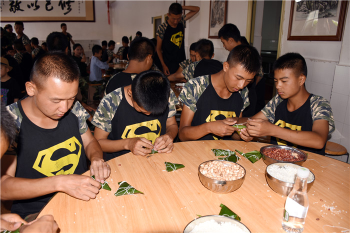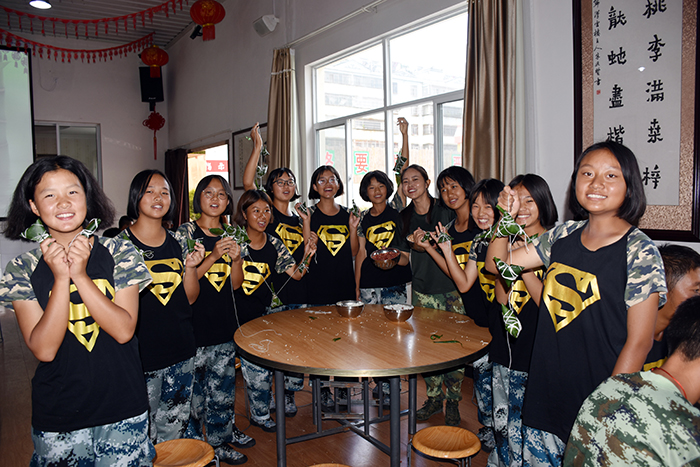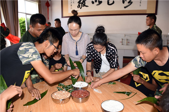 6月7日上午,全體師生在食堂忙碌又精心地準(zhǔn)備著包粽子的材料。在老師的指導(dǎo)下,孩子們清洗粽葉、洗米剪繩、分裝糯米、花生、紅豆等餡料到不同桌子。不一會(huì)兒,所有材料就準(zhǔn)備就緒,大家開(kāi)始熱熱鬧鬧地包起了粽子。師生們把粽葉做漏斗狀、填糯米、放餡料、壓緊實(shí)、封口、彎腰拿繩綁好,有的選手全神貫注,一氣呵成;有的注重細(xì)節(jié),精美扎實(shí);有的拿出奇招,調(diào)整節(jié)奏,提高效率。一時(shí)間粽葉飛舞,絲線(xiàn)穿梭,一個(gè)個(gè)玲瓏而秀氣的粽子很快便誕生了。有三角狀的,有馬蹄型的,還有扁長(zhǎng)型的......