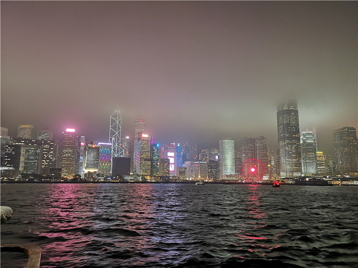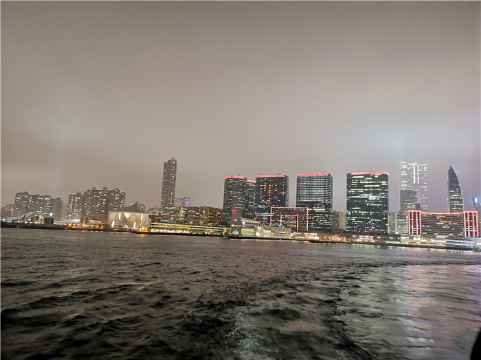華燈初上,迷人的維多利亞港夜景豈能辜負。經(jīng)過半天的海洋公園驚險挑戰(zhàn),大家興致勃勃地來到維港,乘坐著游輪,面朝大海,吹著徐徐晚風(fēng),靜靜欣賞沿途風(fēng)景。會展中心、中國銀行大廈、國際金融中心等幾個地標性建筑物五彩繽紛的燈火如魔術(shù)般地閃動著、變幻著,一會兒變成一道道飛泉流瀑,一會兒變成一條條彩帶,一會兒變成一個個舞動的火龍,讓人眼花繚亂,一時間分不清到底是在夢境還是現(xiàn)實之中。清澈的海面倒映著絢麗多姿的燈光,涼風(fēng)吹過泛起陣陣漣漪,如夢如幻。風(fēng)中夾雜著一些飄來的水珠,清潤無比,讓奔波了一天的疲意蕩然無存。真的是無論去過香港多少趟,仍會被維港的絕色風(fēng)華所迷倒。