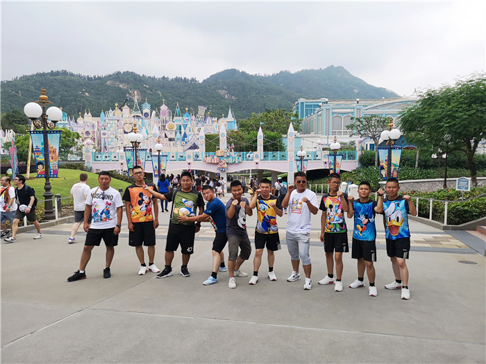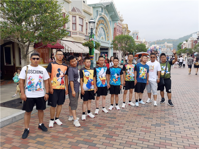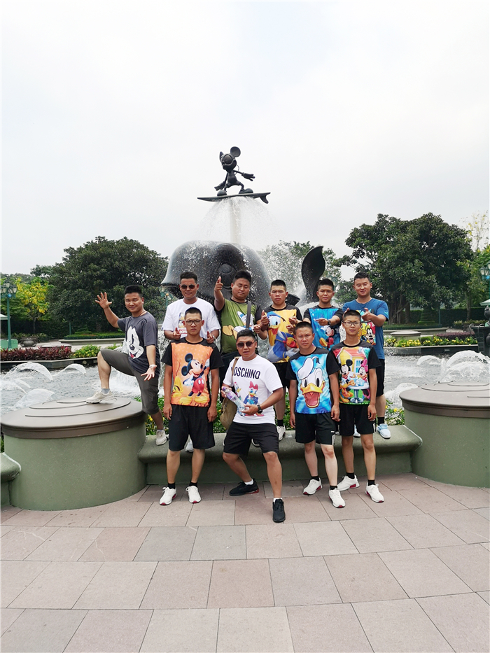 學(xué)校一直秉承“嚴管理,善對待”的教育理念,本次游學(xué)更不例外。由于是去深港兩地的重要學(xué)府參觀學(xué)習(xí),所以學(xué)校重金打造師生高級校服,從衣服到皮帶,再到鞋襪都全部統(tǒng)一。每一次走在深港的高級學(xué)府里,師生們健康陽光、整齊劃一的形象皆成為校園中最靚麗的風(fēng)景線,孩子們也是滿滿的自豪感,心理上絲毫不會感受到與學(xué)哥學(xué)姐們的距離感。而在娛樂的過程中,老師與孩子們更是親如兄弟。在海洋公園和迪斯尼樂園游玩時,老師們還特意定制換上了與孩子們一樣的海豚寶寶及米奇唐老鴨卡通圖案的T恤。平時嚴謹治學(xué),一絲不茍的魯校長為了當好這個游學(xué)團家長的任務(wù),也豁出去穿上了挑戰(zhàn)他著裝的卡通T恤。用他的話說,只要有益孩子們身心健康的事,他都會用心去學(xué),更是用心去做。