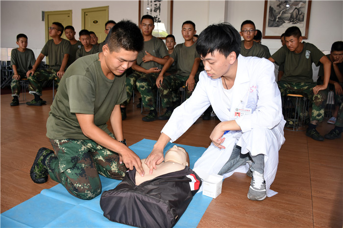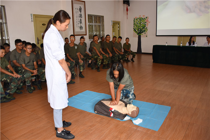 緊接著,孩子們紛紛踴躍上臺進行實操練習(xí)。盡管中途也鬧出了一些笑話,但在醫(yī)務(wù)人員手把手的精心指導(dǎo)下,孩子們規(guī)范了急救姿勢,很快便掌握了急救要領(lǐng)。