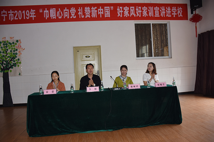 2019年9月12日上午,為深入貫徹習總書記關(guān)于家庭建設(shè)的重要指示精神,大力弘揚和踐行社會主義核心價值觀,深刻領(lǐng)悟中華民族傳統(tǒng)美德的實質(zhì)內(nèi)涵,安寧市婦聯(lián)與我校聯(lián)合舉辦“巾幗心向黨 禮贊新中國”為主題的好家風、好家訓、好家教宣講活動。